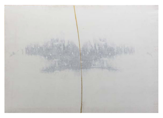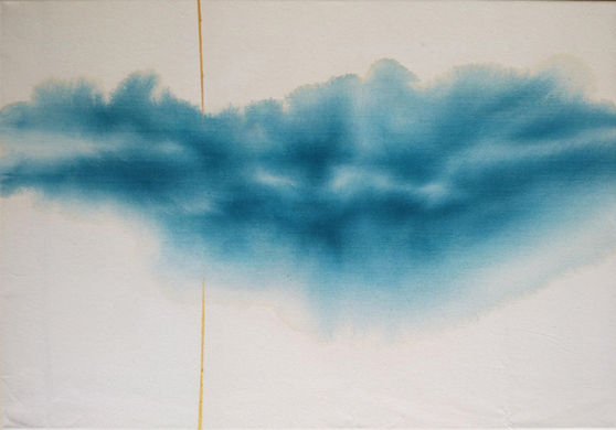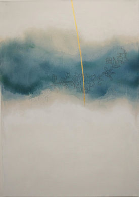 The shades of white and grey delicately spread on the canvas refer to the idea of a blank page on which it is still all to be written. The golden line thus is only the beginning of a narrative that will come to life precisely from that first sign.